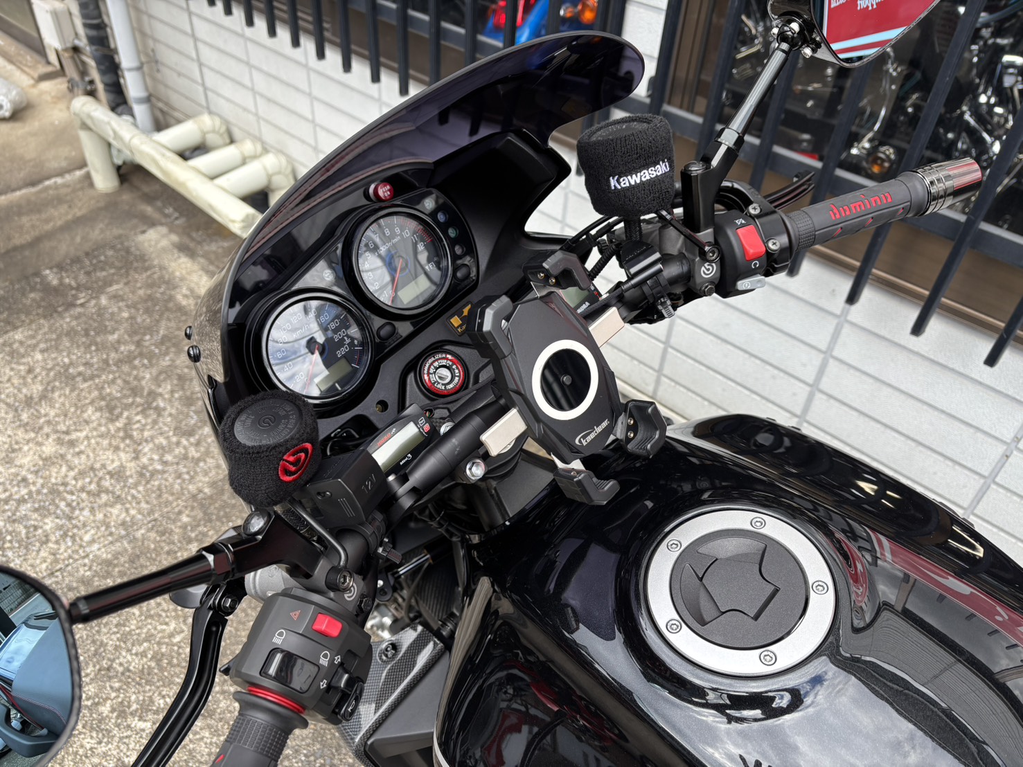 車両セールスポイント前後オーリンズサス・ブレンボキャリパー&マスター・ヨシムラフルエキ・スイングアーム・ダイマグホイール・前後カーボンフェンダー・フェンダーレスキット・オーリンズ製スタビライザー・ベビーフェイス製バックステップ・ETC車載器等カスタム多数!!