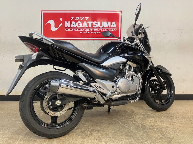 車両セールスポイント綺麗なワンオーナー車のGSR250入荷です!!中低速域で扱いやすく乗り易い一台です!!〜カスタム内容〜MRA製スクリーン・メーカーオプションイモビアラーム・USB1ポート・ヘルメットホルダー